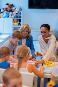 Podczas wizyty w Polsce dr Jill Biden wybrała RiO EDU Centrum jako jeden z pierwszych punktów swojej trasy. To dla nas ogromne wyróżnienie i potwierdzenie, jak ważna jest nasza misja. Centrum powstało po wybuchu wojny w Ukrainie jako przestrzeń edukacyjna i psychologiczna dla kobiet oraz dzieci z Ukrainy. W pierwszym roku swojej działalności skupiliśmy się również na wsparciu zdrowia psychicznego dzieci i młodzież zagrożonych wykluczeniem społecznym, m.in dzieci z domów dziecka. Dr Biden z zaangażowaniem spotkała się z naszą społecznością, wysłuchała historii naszych podopiecznych i zobaczyła z bliska, jak wygląda codzienna praca naszego zespołu.